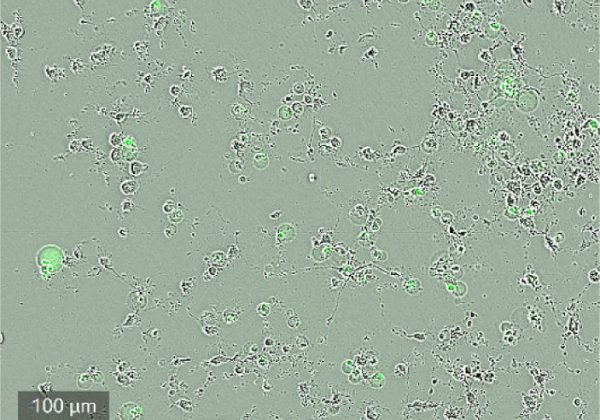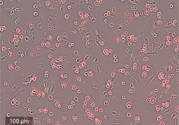 Monitor cells undergoing cell death by measuring the signal from the activation of caspase-3/7.